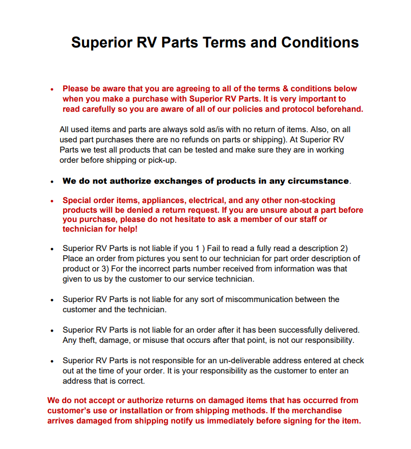 RV Parts Fifth Wheels Travel Trailer Campers Store CA